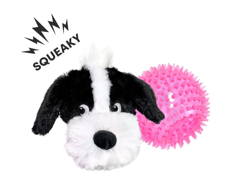 It It will provide a longer lasting play with double-stitched seams, reinforced fabric, and a durable prickly rubber ball inside!